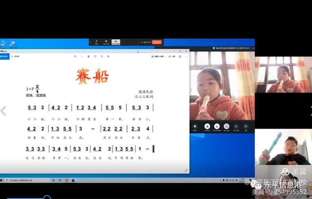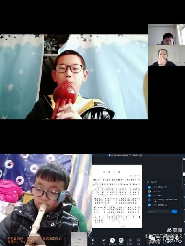 在音乐的在线课堂中,老师不仅引导学生吹奏竖笛、葫芦丝等乐器,还和学生进行的了丰富有趣的音乐互动。全新的授课方式,丰富的网络资源,有趣的音乐体验,让学生对音乐产生了极大的学习兴趣,并积极参与进来。