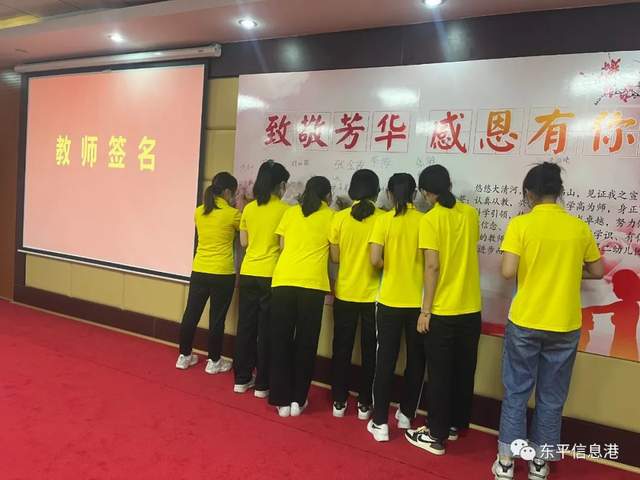 与会教师在签名墙上郑重写下自己的名字。