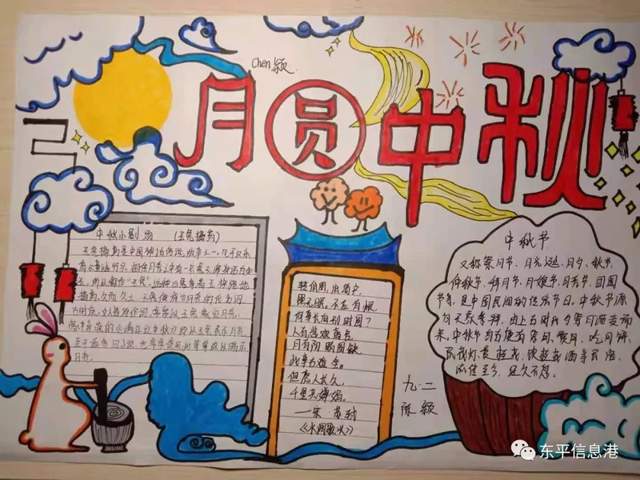 活动中,各班级积极响应团支部的号召,开展了“情系中秋——我们的节日”手抄报创作活动,同学们参与热情高涨,广泛收集有关中秋佳节的资料,精心设计手抄报版面,把自己对传统节日——“中秋”的理解以及对祖国和家人的祝福都寄托其中,制作的手抄报主题突出,内容丰富,图文并茂。同学们用文字和图案传情,向大家展示了中秋节的由来、风俗习惯、灯谜等传统文化;表达中秋喜庆祥和的节日气氛,充分展示了学生的聪明才智。