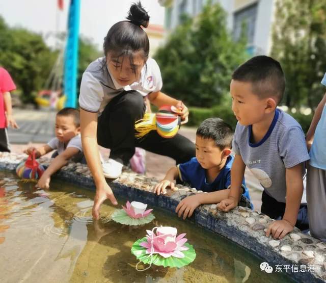 在了解中秋节的由来后,孩子们在老师的引导下用多种形式绘制出了手工美术作品,还带领幼儿体验中秋风俗——祈福放河灯,为祖国祈福。